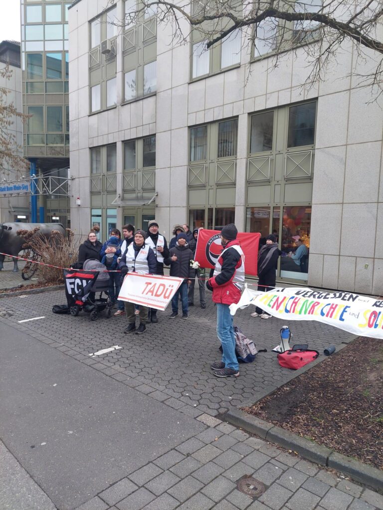 Am 14.02. präsentierte sich die AFD mit einem Stand in Sieglar und TADü organisierte eine Gegendemonstration, um darauf aufmerksam zu machen, dass diese Partei vom Bundesamt für Verfassungsschutz als gesichert rechtsextrem eingestuft wurde, auch wenn das Bundesamt nach einer Klage zunächst eine „Stillhaltezusage“ gegeben hat.